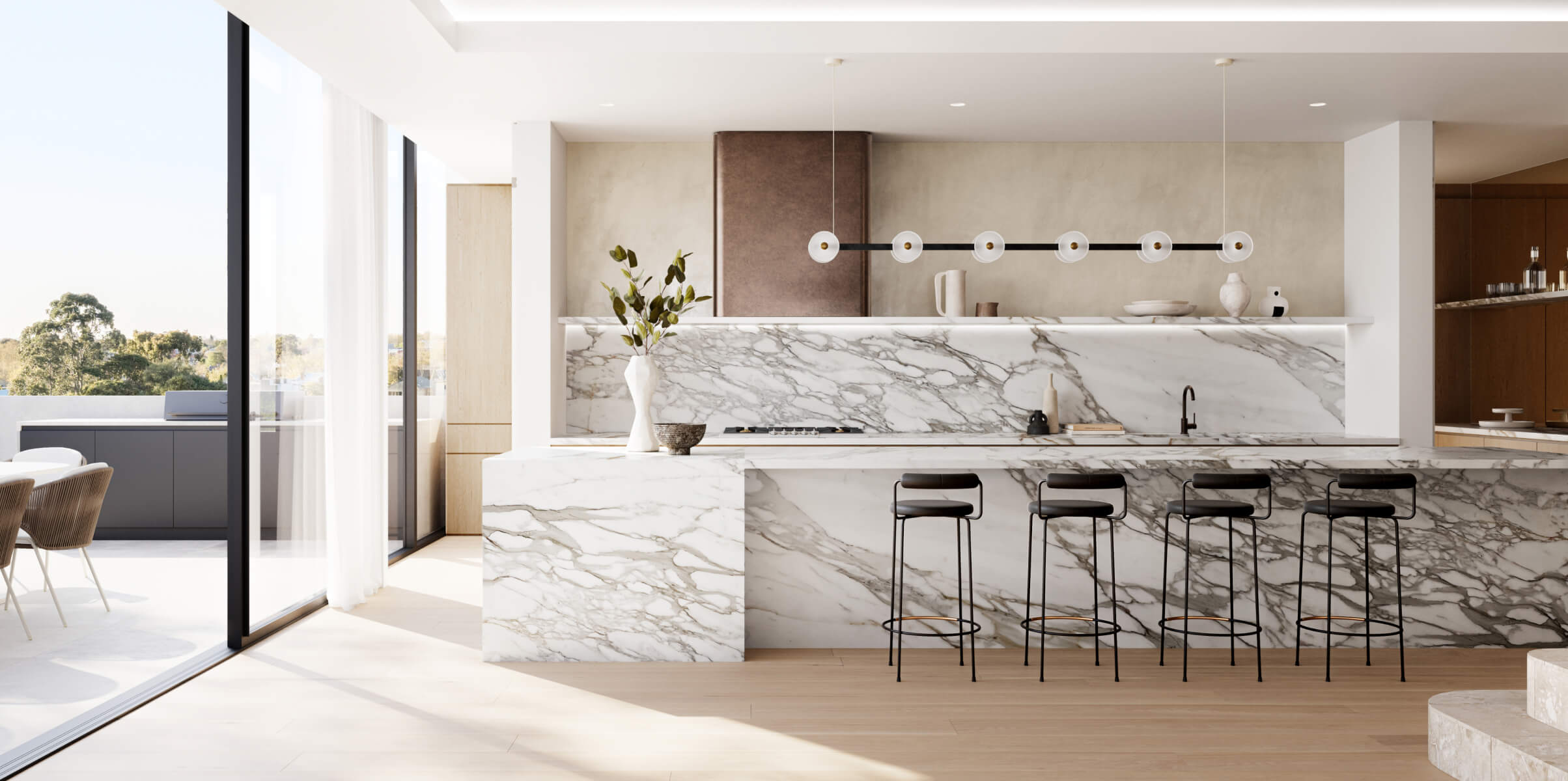2 & 3 Bedroom Residences, are orientated to stunning views and natural light, these residences celebrate the location as much as the rich palette of materials, from timber floors to marble benchtops and splashbacks – a delight for all the senses. 3 bedroom apartments are on average 10sqm larger than a house*.